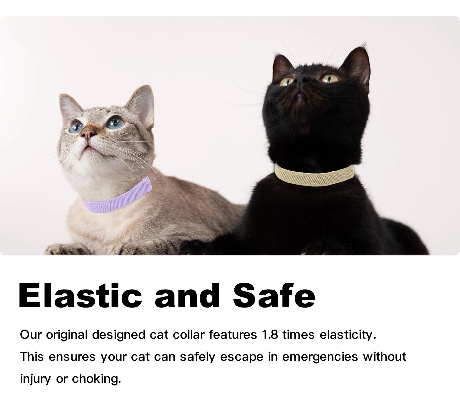【Elastic and Safe】cat collar features 1.8 times elasticity. This ensures your cat can safely escape in emergencies without injury or choking. Note, it prevents cats from choking or injuring even though it is not a breakaway collar